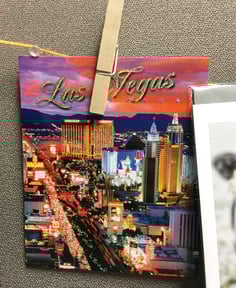 I didn't get my favorite postcard from a team member. I bought it. It’s a cow from Vermont that I picked up on our way to the Anytime Fitness Conference in Lake Placid. I think my second favorite is probably the Costa Rica postcard that Amanda, the Director of my department, gave me. It’s a brightly colored iguana that I named Frank. I would have to say my third favorite is the Las Vegas postcard that Amanda also brought back, because it has glitter on it. I love glitter.